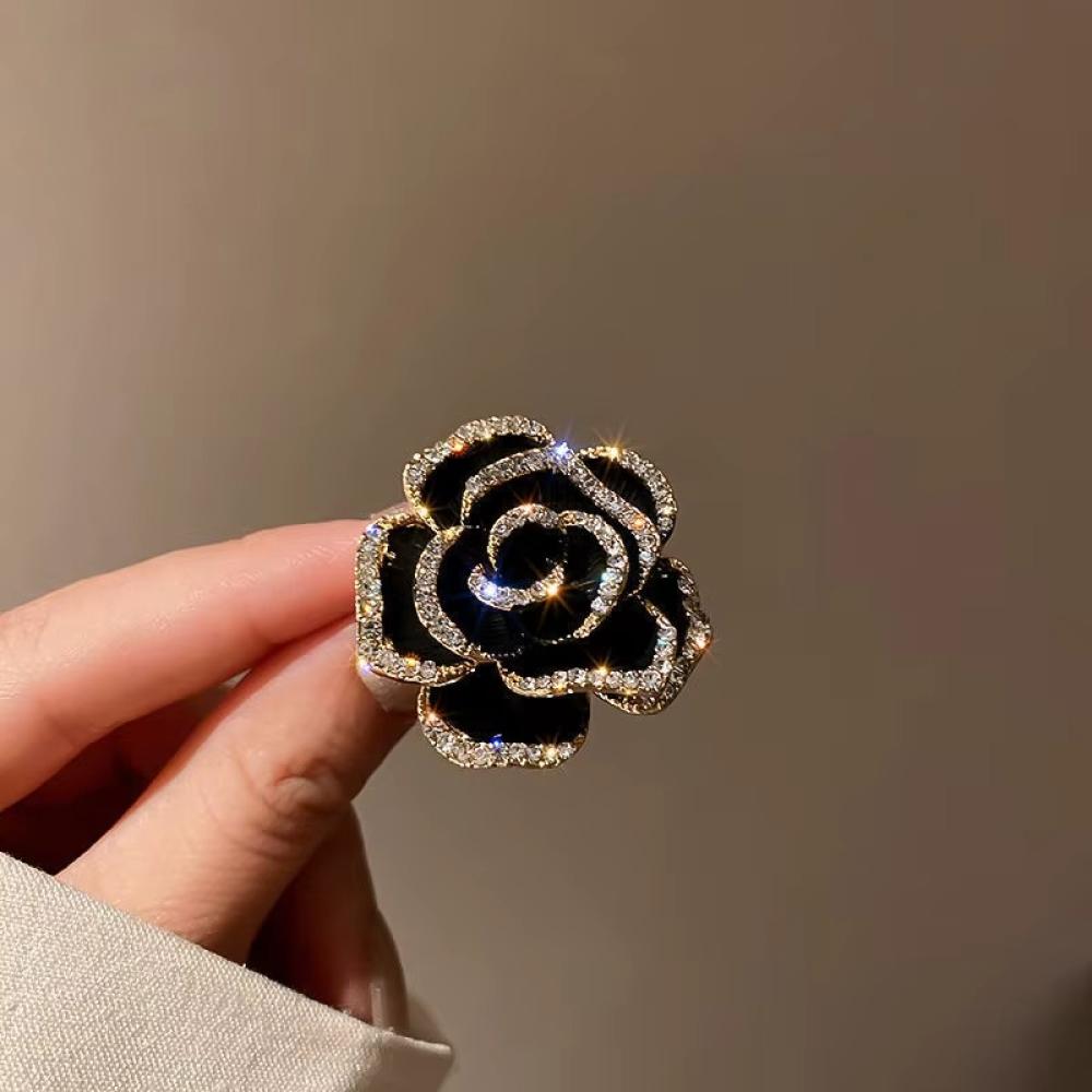 - بروش أسود نسائي فاخر من حجر الراين يضيف لمسة ملوكية