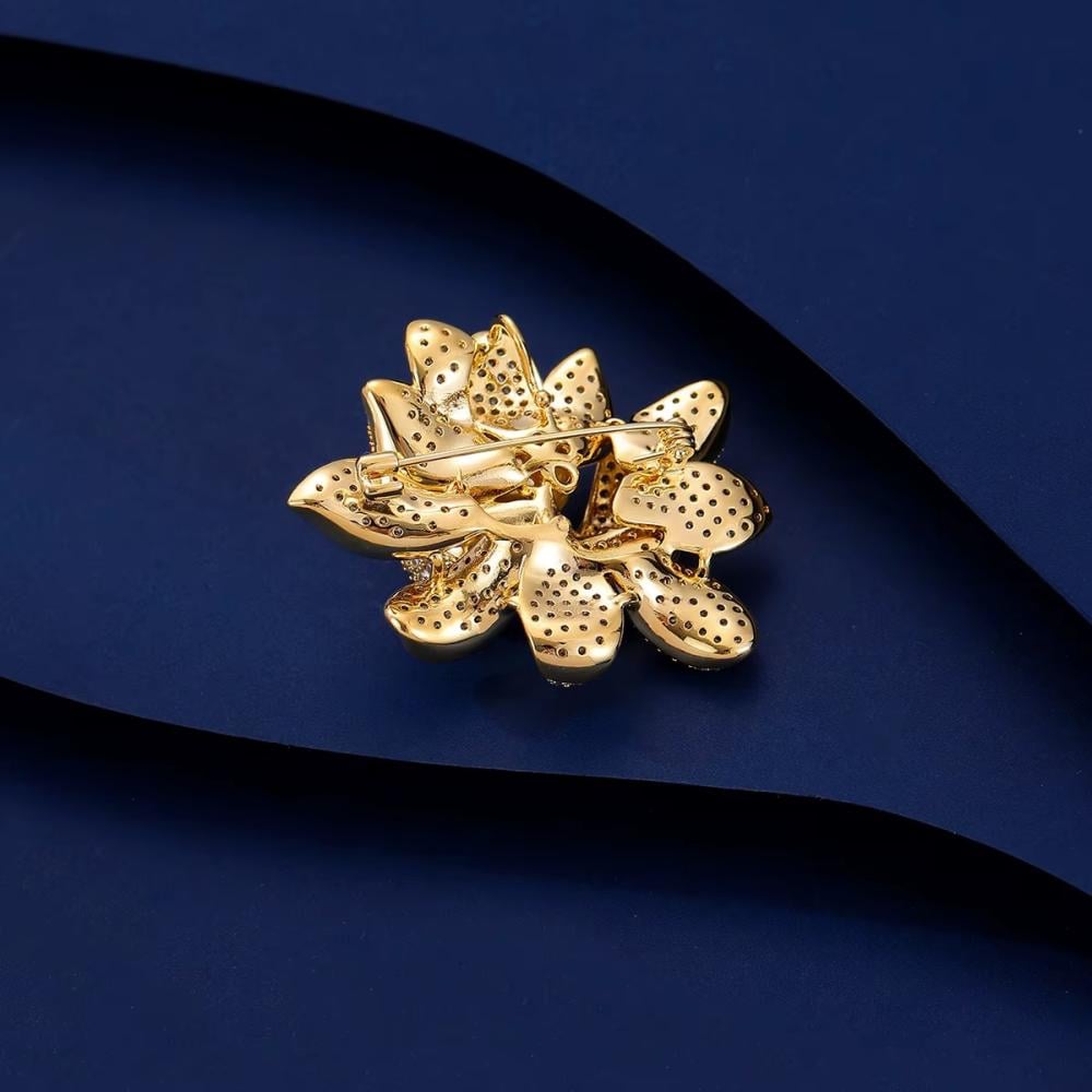 بروش نسائي أنيق ذهبي مزين بالزركون والنحاس